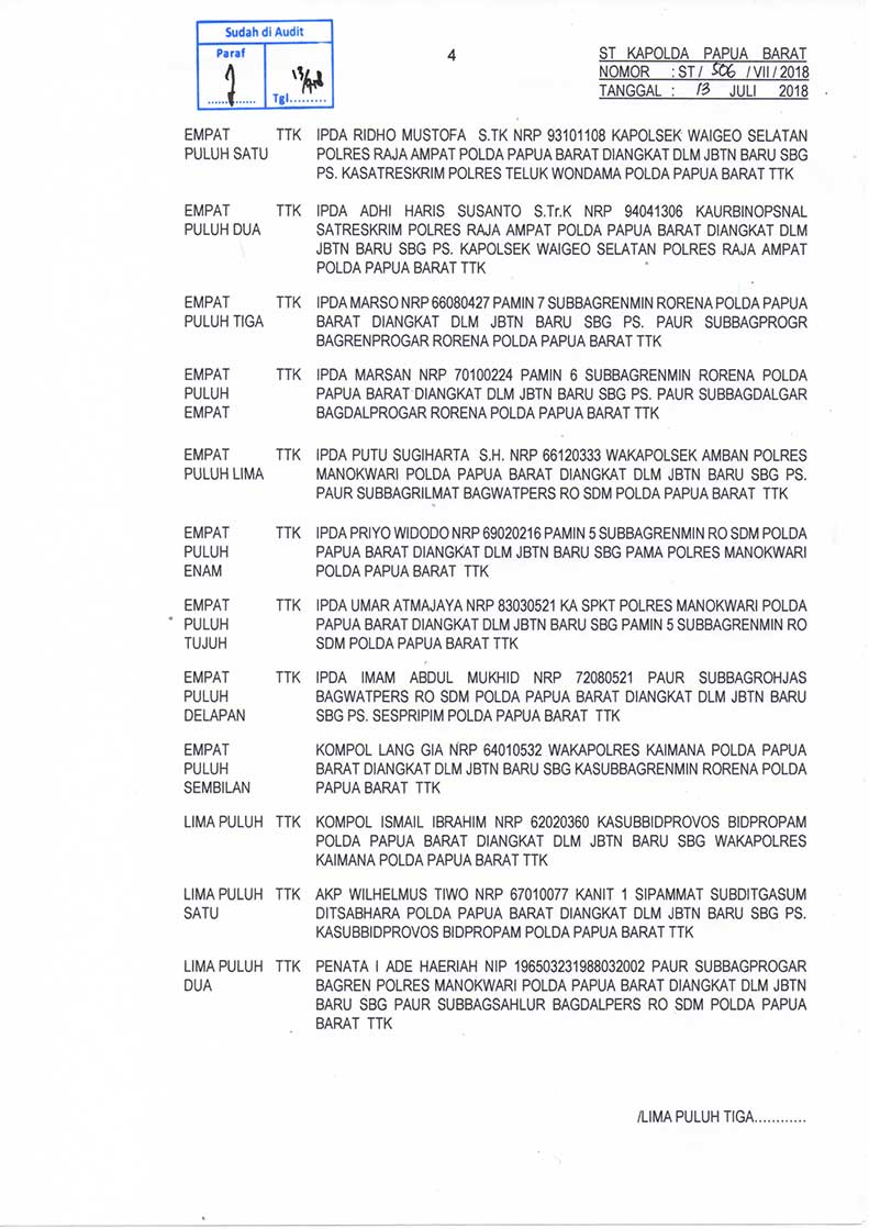 Ini Daftar Mutasi 51 Jabatan Pama dan Pamen Polda Papua Barat