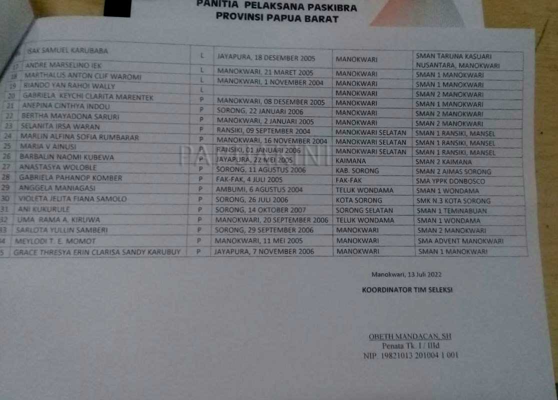 Ini Daftar Nama Paskibra 2022 Papua Barat