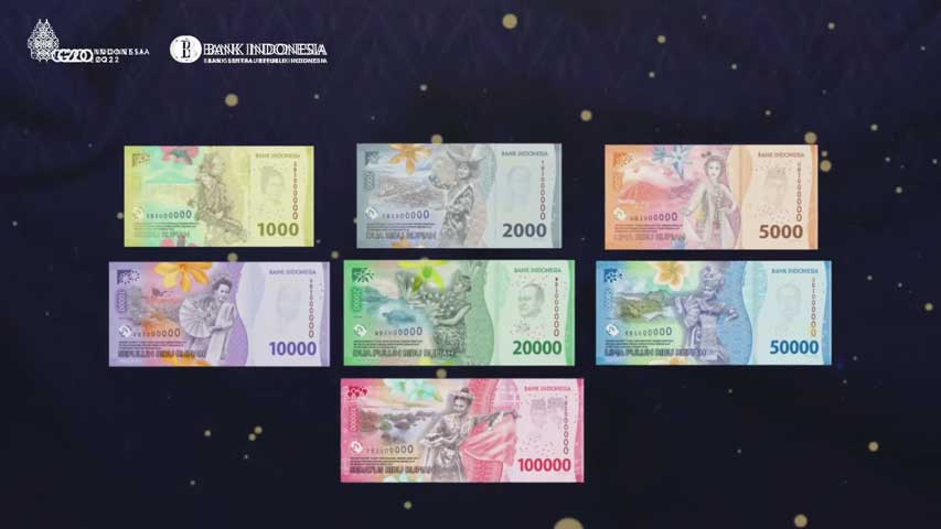 Tujuh uang kertas emisi 2022. (Tangkapan layar YouTube BI.)