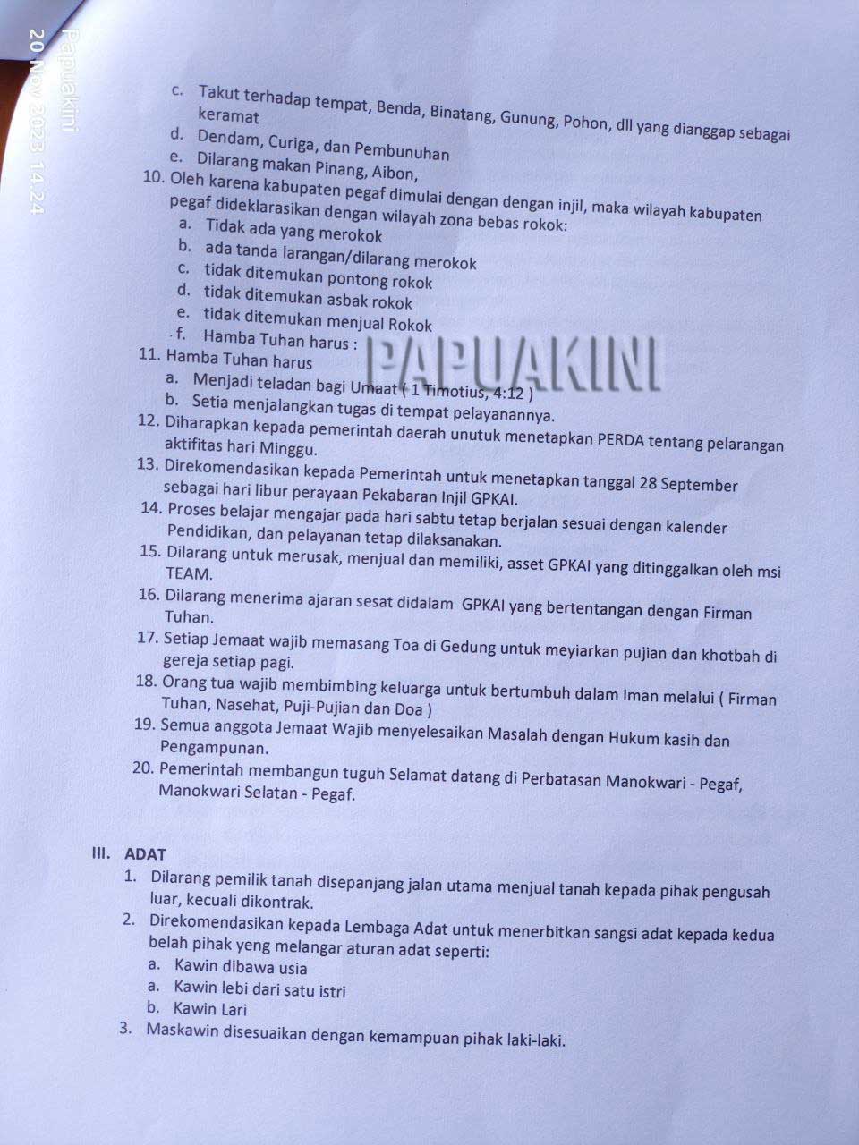 Ini 89 Butir Deklarasi Pemerintah, Gereja, dan Adat Kabupaten Pegunungan Arfak